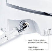 The Swash 1400 is crafted to offer a luxurious clean for every user, every time. Features include adjustable wash settings, customizable spray and pressure patterns, warm air dryer and endless warm water—all controlled by an included programmable remote. The addition of an LED nightlight and carbon deodorizer make this our best-in-class electric bidet seat. The bottom line? This is the luxury toilet seat you’re looking for.